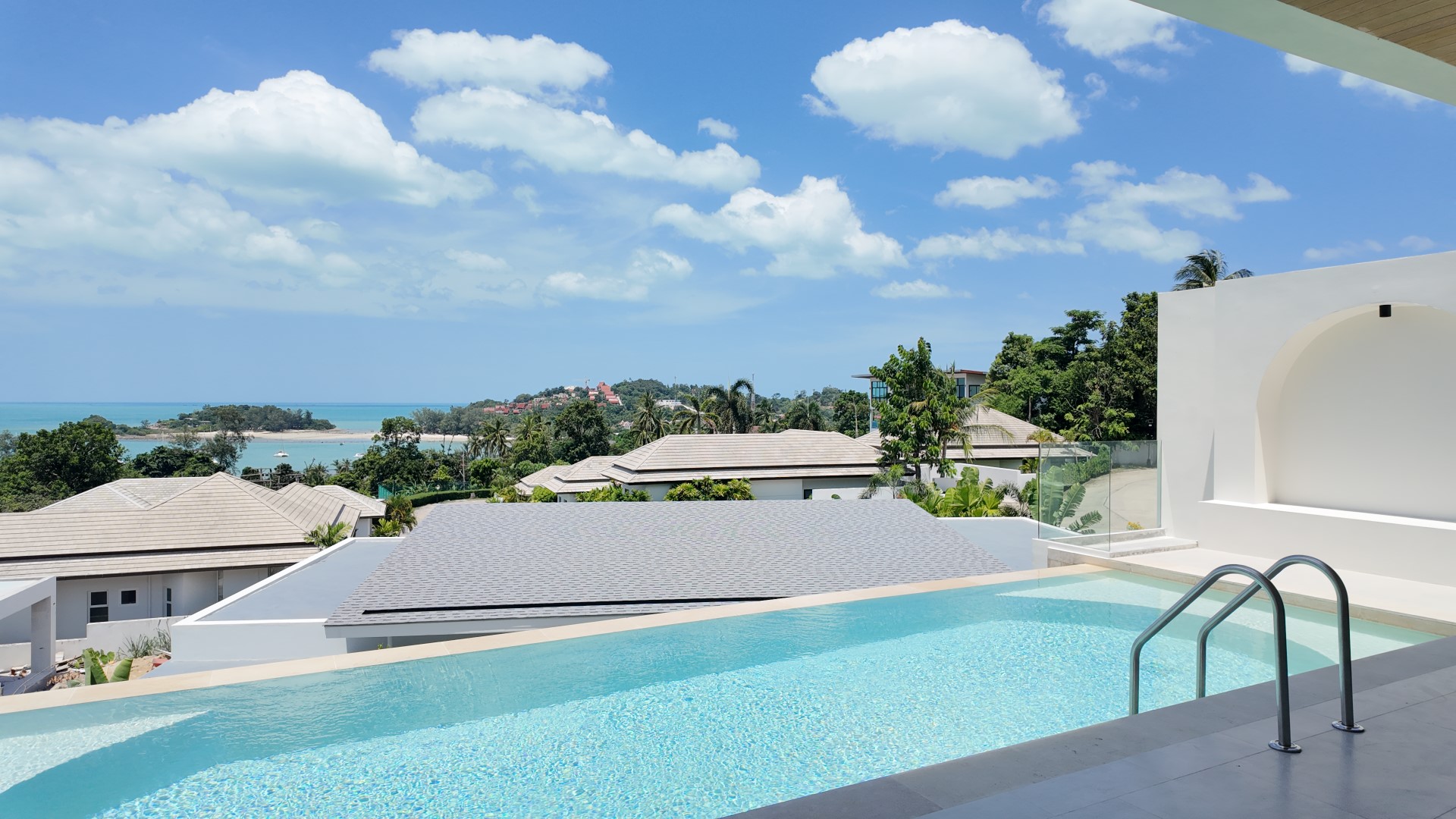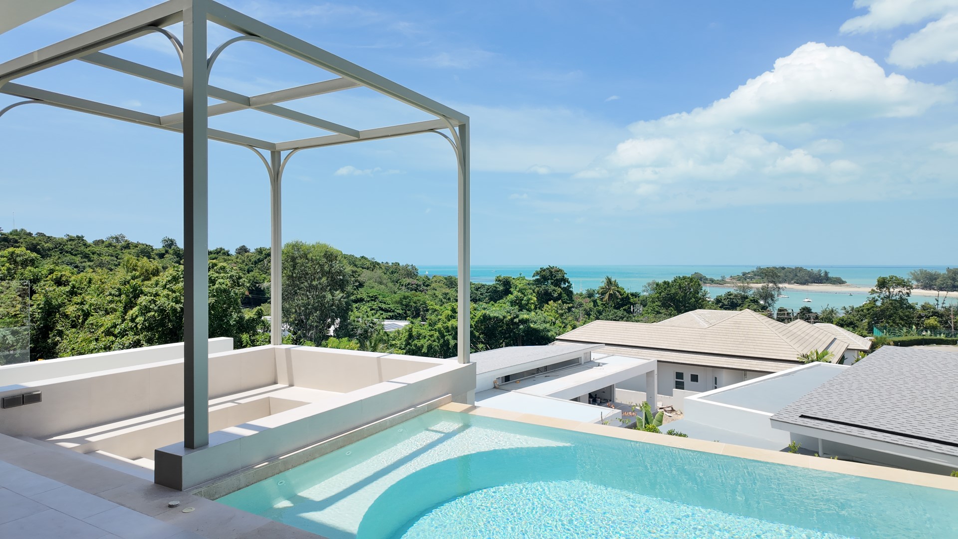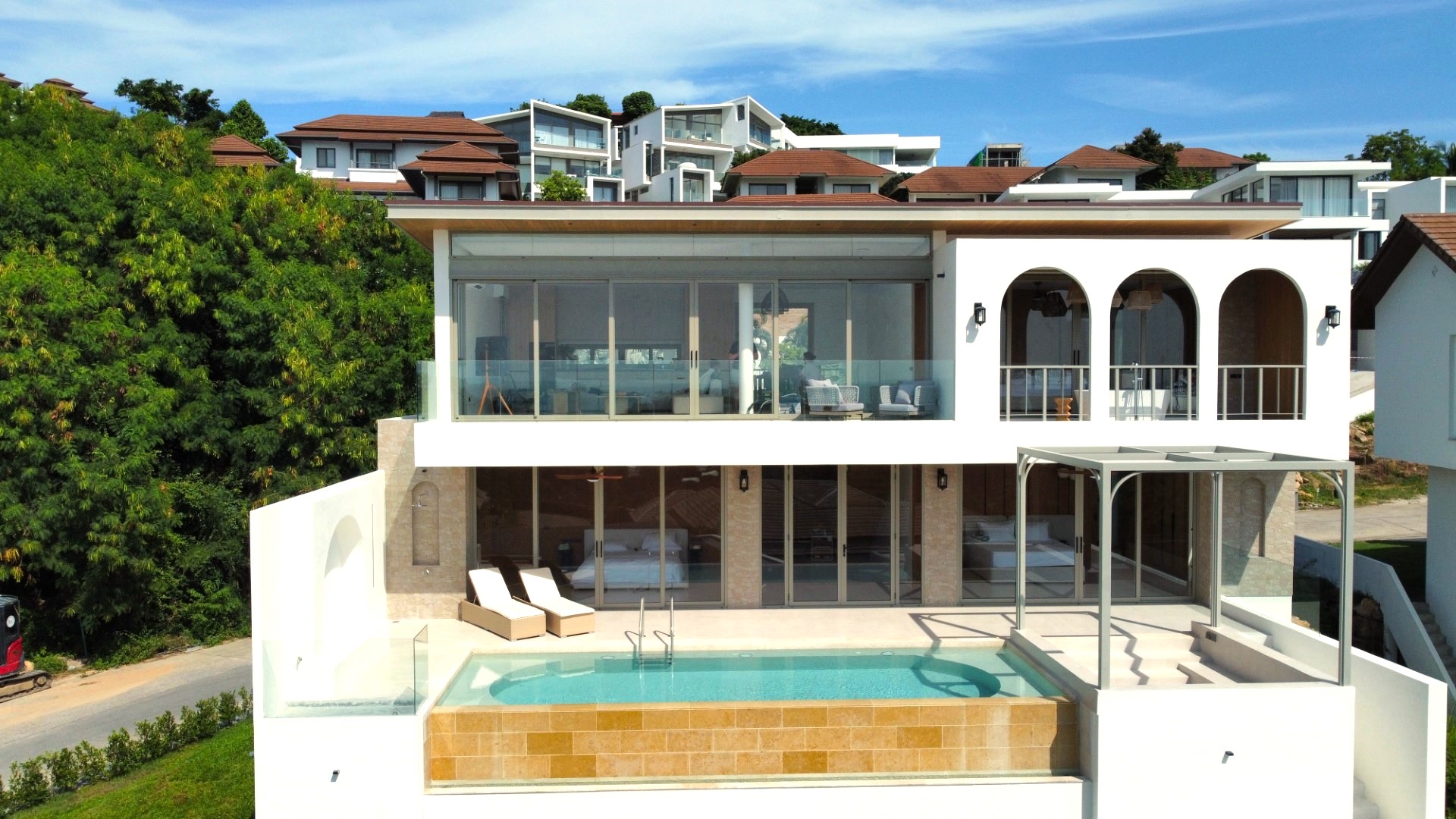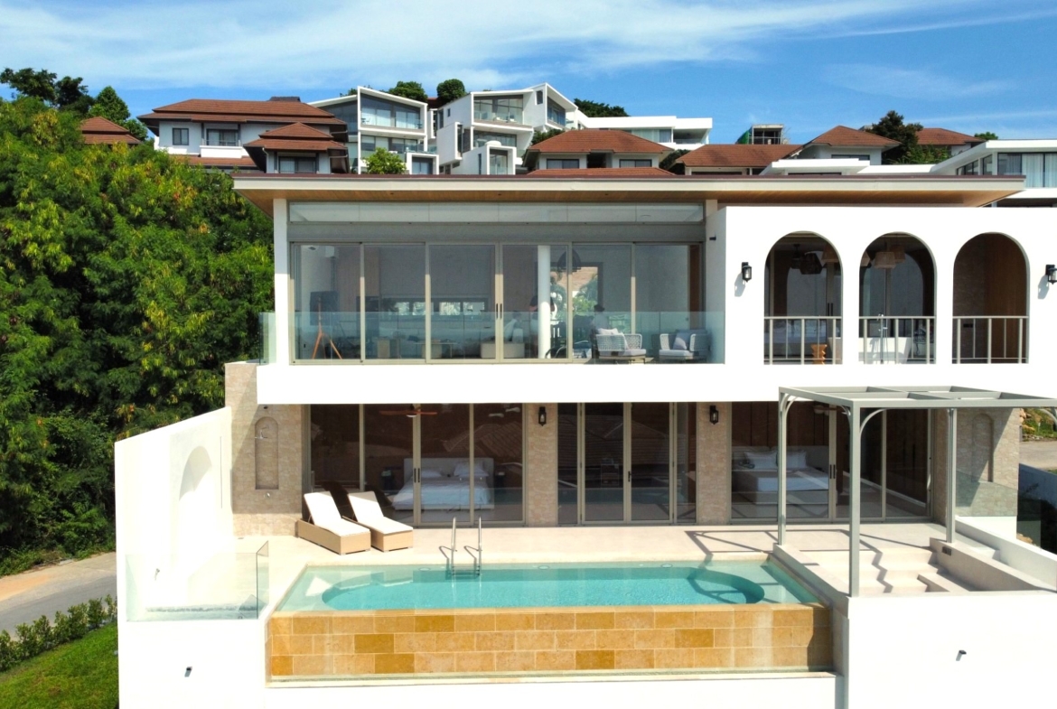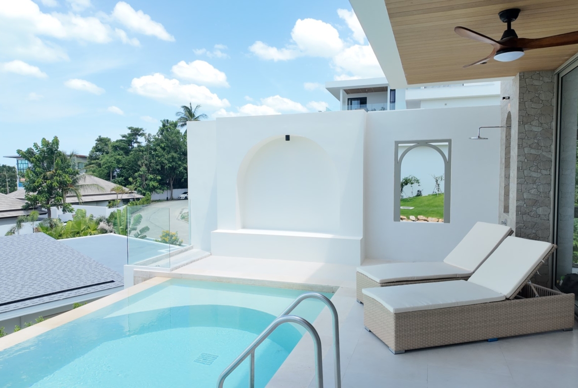 Located just a short stroll from Choeng Mon Beach, shops, and restaurants, this fully furnished villa sits within an exclusive gated community offering 24-hour security, on-site management, a tennis court, and a fully equipped gym—making it ideal as a private residence or luxury investment property.