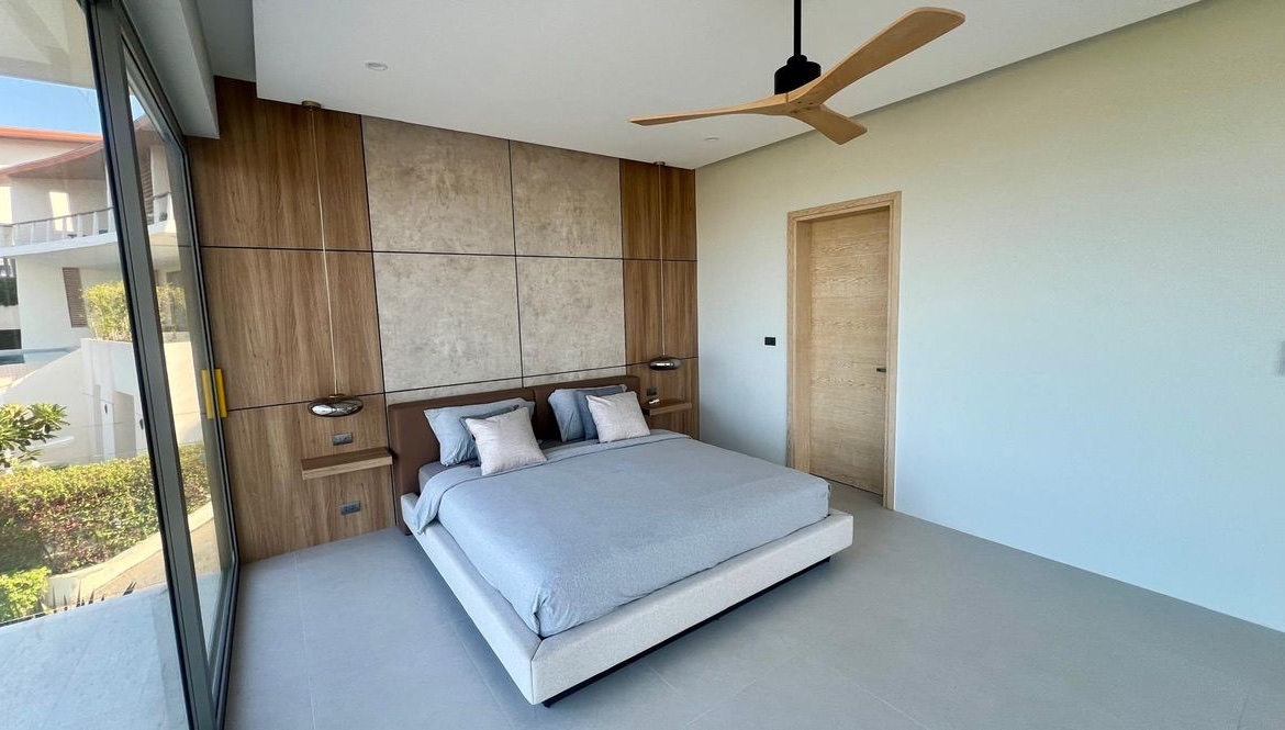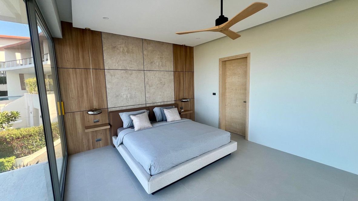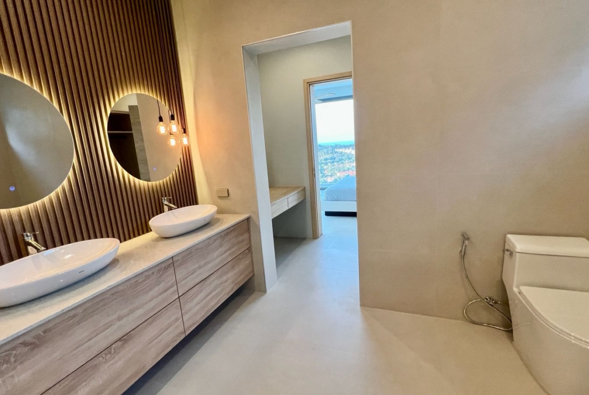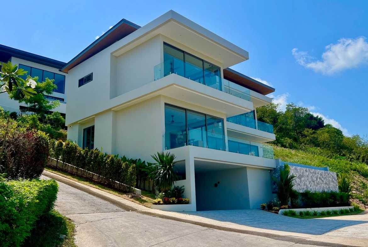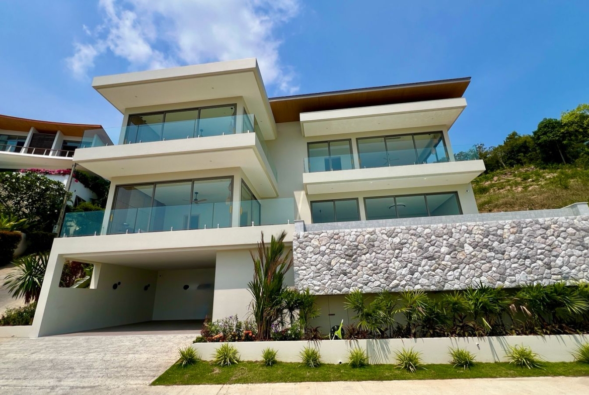 Experience this brand-new contemporary 3-bedroom, 4-bathroom villa, perfectly positioned in the upscale hills of Plai Laem. Boasting a thoughtful architectural design and standout visual appeal, this residence offers beautiful panoramic vistas spanning five bays and the lush Samui hills.