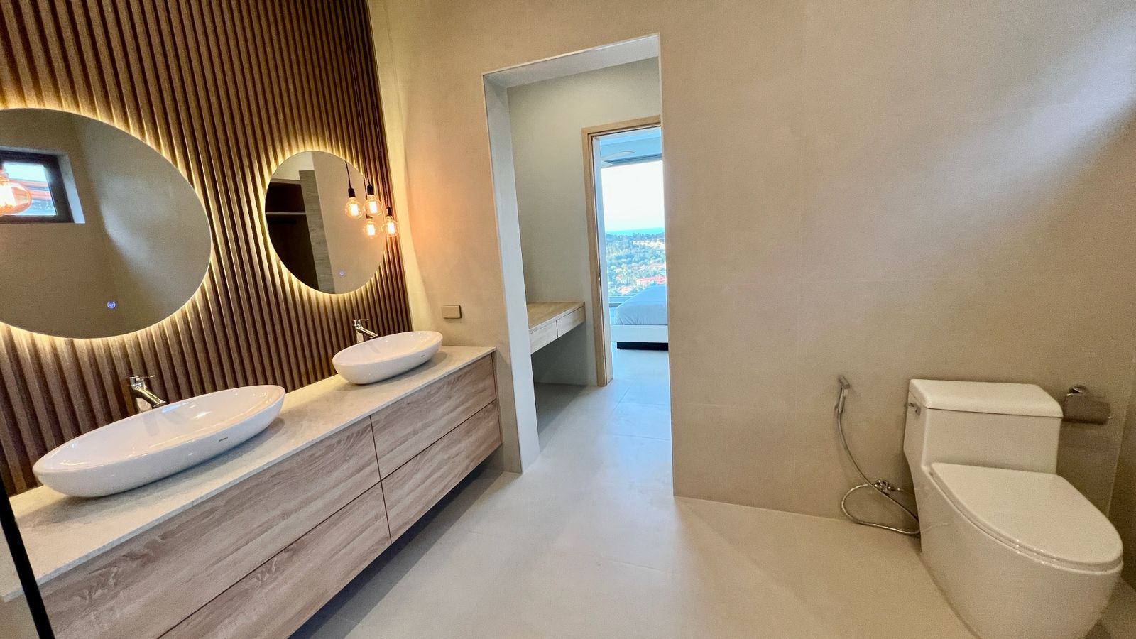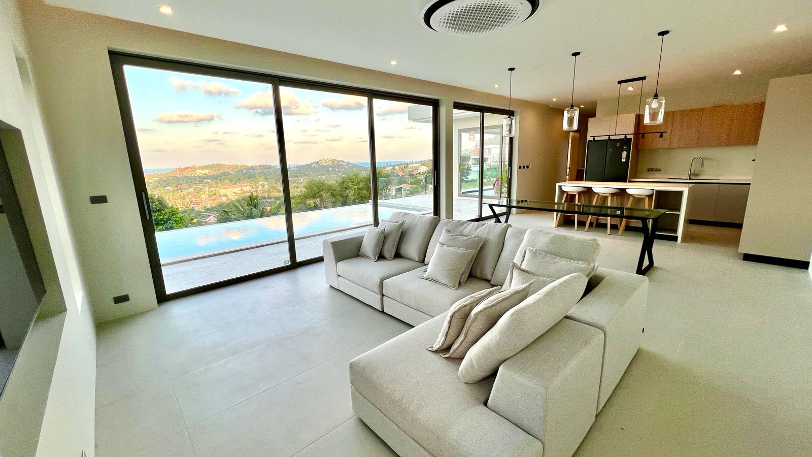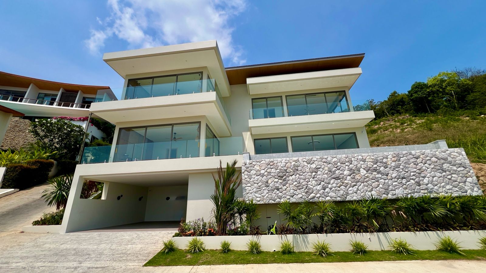 Experience this brand-new contemporary 3-bedroom, 4-bathroom villa, perfectly positioned in the upscale hills of Plai Laem. Boasting a thoughtful architectural design and standout visual appeal, this residence offers beautiful panoramic vistas spanning five bays and the lush Samui hills.